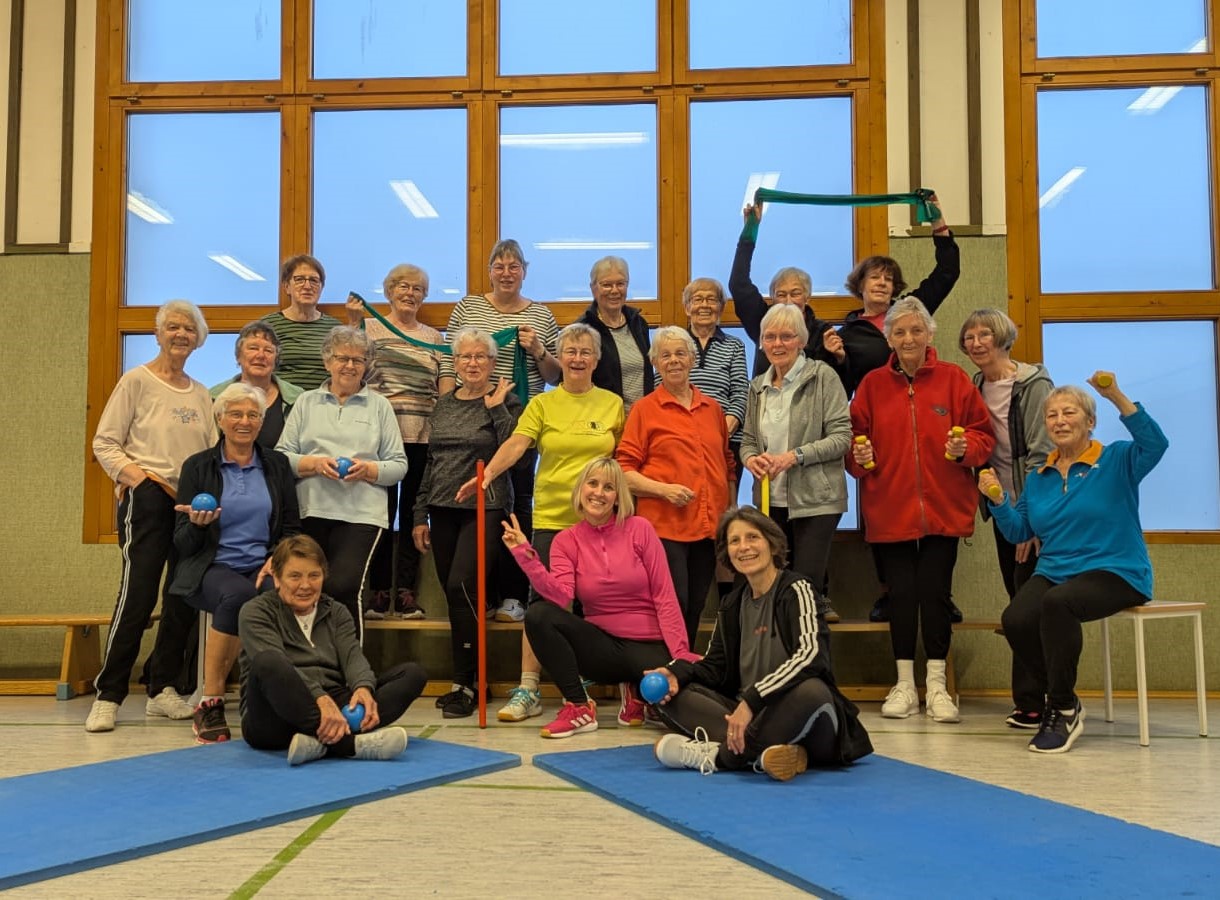 Wir treffen uns immer montags zur Seniorengymnastik in der kleinen Turnhalle. Unsere Gruppe wirkt wie ein Jungbrunnen. Wir kräftigen die einzelnen Muskeln im Körper, bewegen uns bewusst und fördern das Zusammenspiel zwischen den Muskelgruppen. Die Gelenke werden geschmeidig gehalten und so beugen wir Rückenschmerzen, Muskelverspannungen und mangelnder Beweglichkeit vor. Auch das wichtige Training für dein Gleichgewicht findet in unserem Kreis immer wieder Beachtung. Zugänge 50+ sind herzlich willkommen.