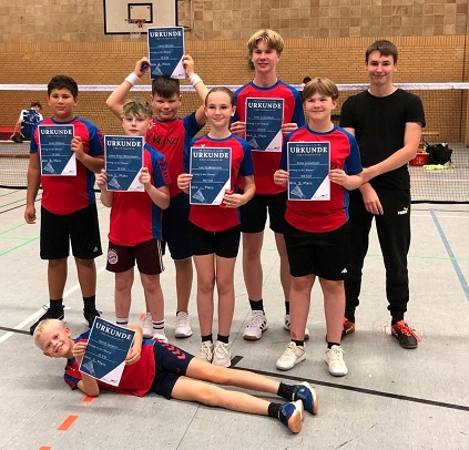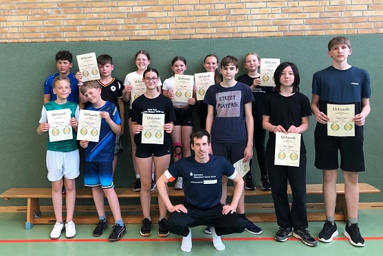 Trotz extremer Hitze war eine Auswahl unserer Badminton-Nachwuchsschmiede am 22.06. auf einem Schleifchenturnier in Bad Bodenteich unterwegs. Glücklicherweise war es in der Halle erträglicher als Draußen, sodass es der guten Laune und sportlicher Höchstleistung keinen Abbruch tat. Durch Kartenlosung wurden vor jeder Runde die Doppelpaarungen aus insgesamt 38 Startern zusammengeführt. So kam es zu abwechslungsreichen Konstellationen mit und gegen die unterschiedlichsten Spielerinnen und Spieler aus den umliegenden Vereinen aus dem Landkreis Uelzen sowie Lüchow-Dannenberg.